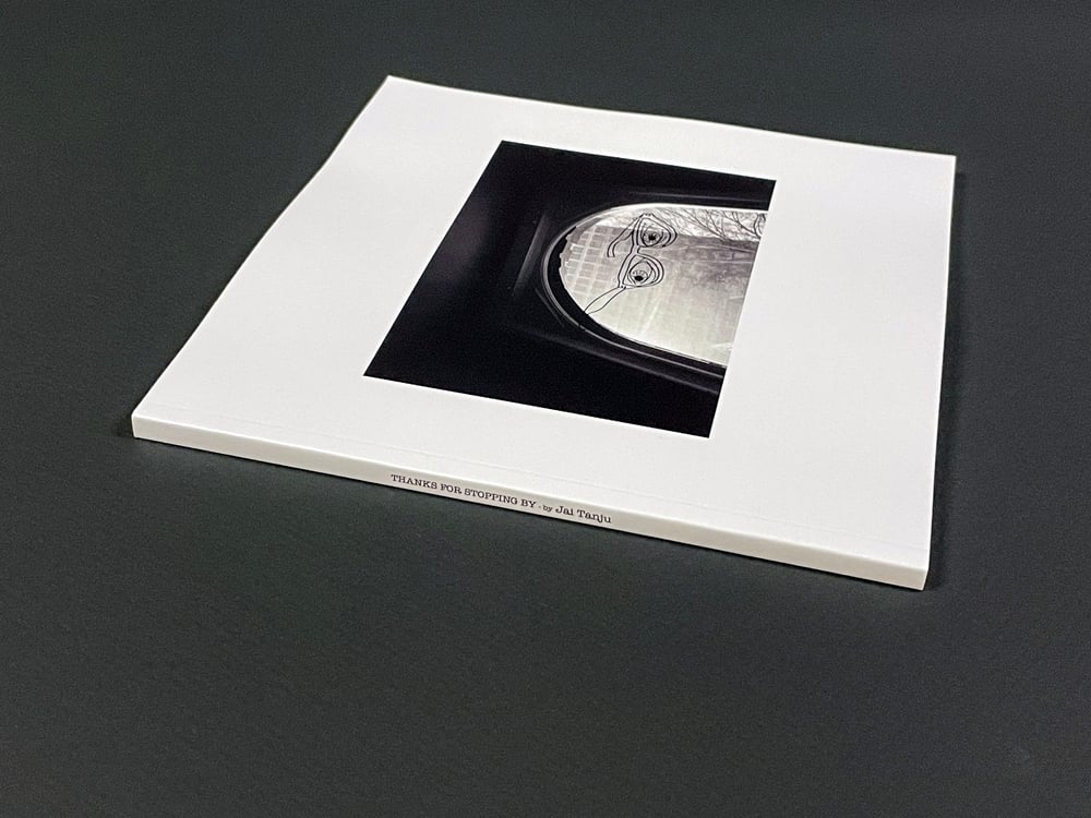 THANKS FOR STOPPING BY is a 120 page black & white perfect bind book of portraits I took at the Seeing Things gallery over the five years that we were open. Sadly I was too busy most of the time to take portraits of all the artists who showed art there or friends who visited but I got a lot & am very proud of how the book turned out!